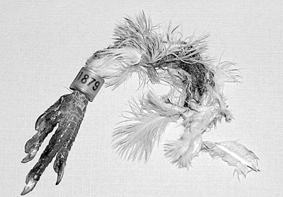 在监管办,记者见到了一只鸽子脚。