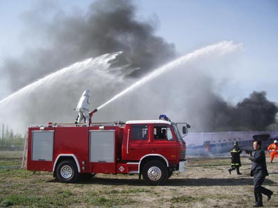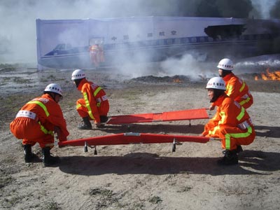 顿时伊宁机场左侧演练场上沸腾起来,机场消防队一辆消防主战车、一辆干粉灭火车紧急赶赴现场,紧着装备精良、训练有素的州消防局三辆消防车,按照冷却降温、预防爆炸、优先救人、蓄积力量、近战快攻、一举歼灭的战术原则实施救援。二分钟内,机场、公安、武警、消防、医疗、120等到达现场,这时,发生事故的飞机火光四起,消防官兵使用高压水枪、水炮、喷射干粉汇成一股强劲的泡沬,射向起火的飞机,在一分钟之内控制了火情,消防官兵打开飞机舱门、飞机里的乘客一一被救出,伤员全部转移到安全地带。