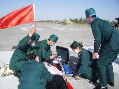 医务人员全力抢救伤员、他们分别用人工呼吸、电击等营救方法抢救一个个伤员,在不到15分钟里,疏散旅客88人,机组人员8名,抢救伤员10名。整个演练干练迅速,秩序井然,有条不紊,受到新疆机场(集团)公司副总经理刘永昌的好评。